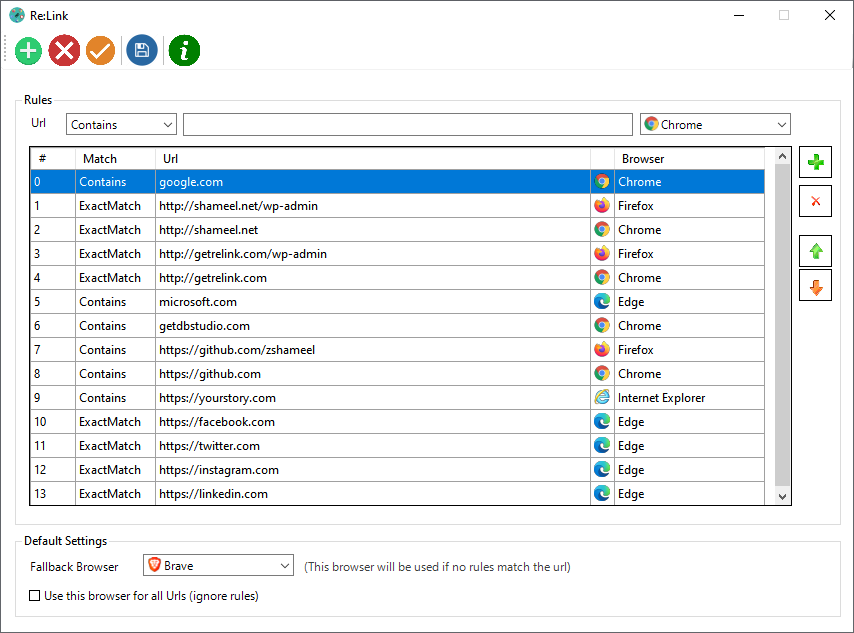How about having multiple default browsers? How about intercepting the link click and redirecting the link to the desired browser based on some rules? For example, google.com opens in Chrome, while outlook.com opens in Edge and github.com in Firefox? That’s exactly what Re:Link does.